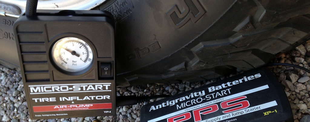Here at Antigravity Batteries, we don’t only sell lightweight lithium batteries and battery jumpers. We also have a handy tool called Tire Inflator for Micro Start. Paired with your pocket sized Micro-Start, you will be able to inflate any tire no matter where you are. This tool is the perfect addition to any travel kit.