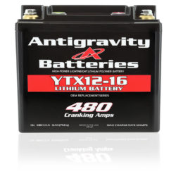 This Hi-Power battery is in the YTX12 case format but only weighs 3.4 lbs. Any of our 16-Cell versions are fantastic additional power for bikes up to 1500cc. This lightweight Lithium YTX12 battery is best used for applications where extreme POWER and more capacity are needed for uses such as adventure bikes, sport touring bikes or modified literbikes where a higher power battery is desired. Also great for use in Race Cars. The YTX12-16 does not have our RE-START built-in jump-starting feature but offers a deeper level of Discharge for more usable Capacity and more Power for Cranking.