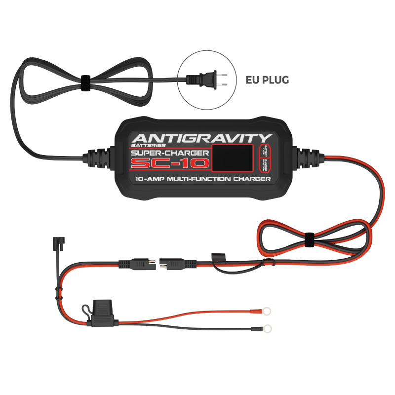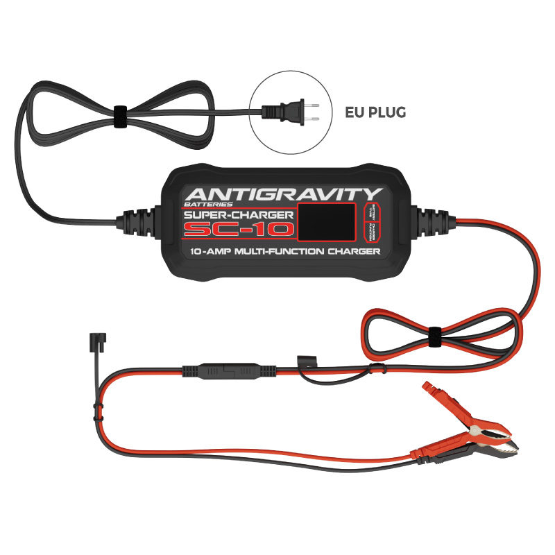 Antigravity SUPER-CHARGERS are available in 3 models: SC-10, SC-4, and SC-2. Their main difference is the maximum Charging Current. Another is that the SC-10 and SC-4 are full-featured with special functions built-in. The SC-2 is a lower-amp model that is best used for maintenance purposes on smaller applications such as Motorcycles, Lawn Mowers, and other smaller battery applications as it has a slower charge rate and basic charging abilities.